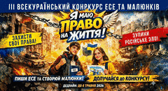 Розпочато прийом робіт на III Всеукраїнський конкурс есе та малюнків «Я маю ПРАВО на життя». Проєкт покликаний привернути увагу до прав українських дітей, постраждалих внаслідок повномасштабної збройної агресії рф, а також популяризувати демократичні принципи та європейські цінності. Про це інформує організатор – соціально-гуманітарний факультет Українського державного університету імені Михайла Драгоманова.