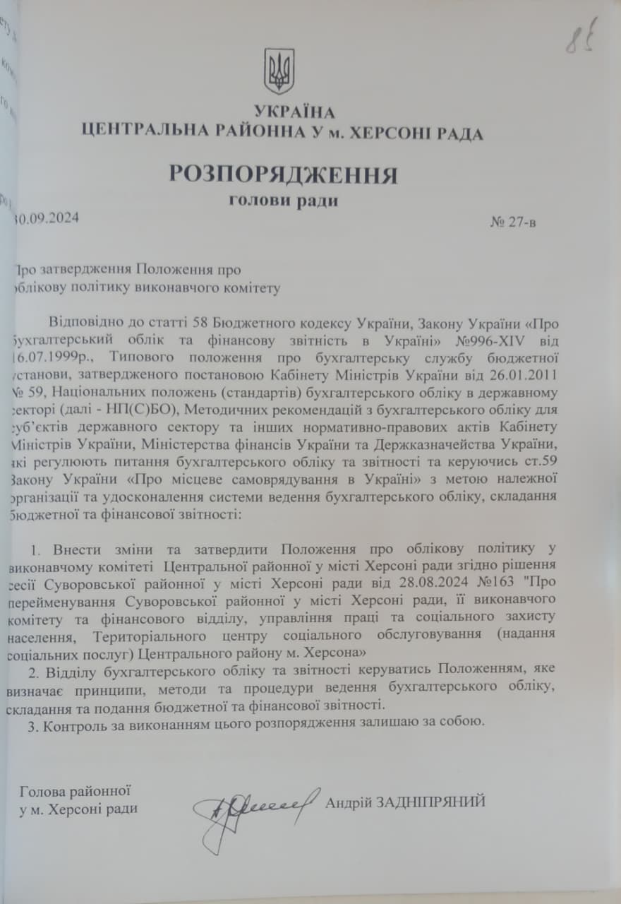 27-в | Про затвердження Положення про облікову політику виконавчого комітету | 30.09.2024 | 30.09.2024 |